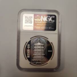 描 述:这枚木塔银币指的是中国人民银行于2024年8月27日发行的应县佛宫寺释迦塔30克银质纪念币,是“应县佛宫寺释迦塔金银纪念币”套装中的三枚之一。