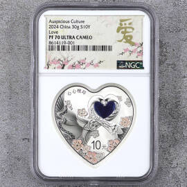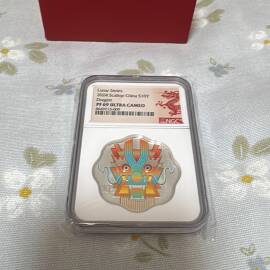 描 述:2024年甲辰龙年梅花银币,NGC封装PF69分,大奔富龙,证书12027,寓意要爱爱妻❤️,30克足银999,面值10元,限量发行。带原盒和中国人民银行证书,品相完美,保真带标。