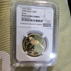 描 述:NGC7Ox1 首期蓝标 限量发行520枚 满分更稀少难得 正面:国宝大熊猫及香港钱币研究会标志;背面:龙凤图纯银镜面工艺和磨砂镀金精雕工艺 评级币以分数为准