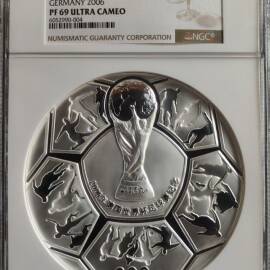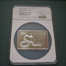 描 述:靓号0128 NGC PF70 新疆建设兵团成立60周年 5盎司999银币 币面带自然晕圈包浆 原盒原证