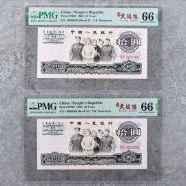 描 述:大象号2张,“99999”和“00000”钞号J378499999.J259500000,PMG 66EPQ.65EPQ,分略低,但号码难求,难遇的收藏佳品。