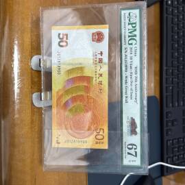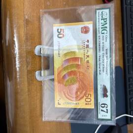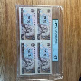 描 述:非常难得的805 四连体 连体钞,PMG67高分。号码不带47,钞号EE0080/1/2/36115,证书号对号:106115。带原装康银阁册子和证书。