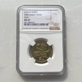 描 述:普制2006年狗,NGC评级,67分,NGC评级编号尾3位016。一轮12生肖之一。亚军分评级,冠军分MS68只有3枚。