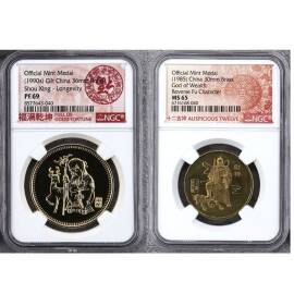自主上传1990年上币寿星“镀金”铜章(36)+1985年上币财神福如东海铜章(30)
