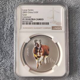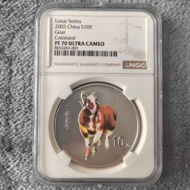 描 述:2003年生肖羊彩色银币,评级串号含京、沪、穗、津四大区号,极具收藏纪念意义。四枚通出,价可小议,大刀勿扰。来年羊年行情可期,靓号稀缺,早入早赚。见者好运,入手圆满。