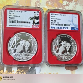 描 述:2002年(马年)熊猫银币 经典老标 与2001年版采用了完全相同的设计图案,这在熊猫币发行史上是唯一的一次。此外,它还开创了标志性的无边框设计,并见证了中国贵金属纪念币市场化的重要转折。品相好