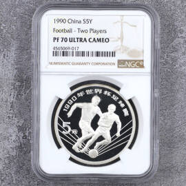 1990年27克第14届世界杯足球赛争球银币