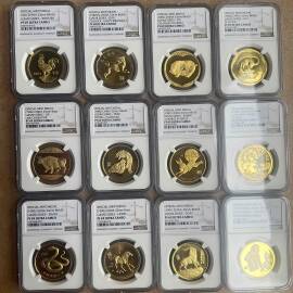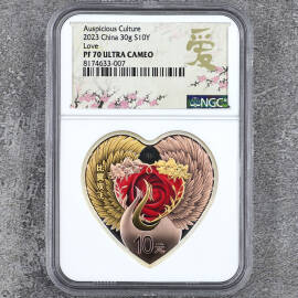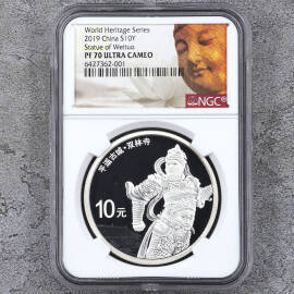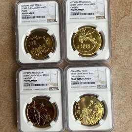 描 述:2017年熊猫金币发行35周年双色纪念章,NGC评级MS70 ANTIQUED,上海造币厂出品,罗永辉设计。正面黄铜,背面紫铜,直径100mm,限量5000枚。品相全新,原装NGC评级壳、礼品盒、证书