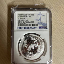 描 述:【老精稀NGC70满分币】1997年少数民族文化第一组银币,四枚一套、每个都是1盎司99.9%银,10元面值,带盒带证书,实物图,NGC70现仅存在11套,非常稀少收藏佳品。适合收藏或投资。