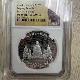 描 述:2024年应县佛宫寺释迦塔30克银币 NGC评级PF70 ULTRA CAMEO,编号19040,佛祖保佑,佛头标,封装版,品相完美,币面光亮,细节清楚,收藏送礼都很合适~
