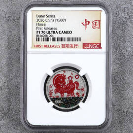 描 述:PF70UC,品相完美的老稀精,2字头的老评级编号,可能盒子损坏过,换过盒,所以不是经典老标评级号居中方式。具体原因不太清楚。
