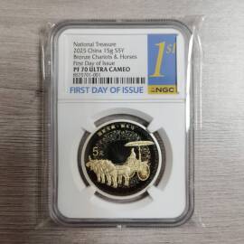 描 述:【2025中国龙年银币】PCGS MS70评级币,全新未拆封,带原装评级盒,99.9%纯银,重31.104克,面值10元,生肖龙年题材,正面龙腾云雾,背面长城,收藏投资两相宜。
