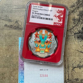 描 述:首期数量少,有部分瓶子脱落,完好的更少。传说佩戴玉饰,玉饰破碎是为主人挡了一次某某,举一反三,这个瓶子破损是不是也可以这样解释。一枚有趣的币,值得拥有收藏
