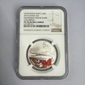 描 述:首期蓝色标签 证书号05568,2024是国内首个年份采用激光鳞彩工艺生产熊猫大规格银币的首枚鳞彩,而且激光面积最大,好品相70分的不多,是该系列中收藏难度最大的一枚!