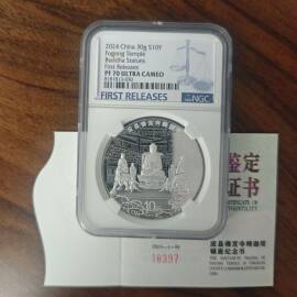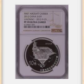 描 述:2012年中国海军首艘航母辽宁舰1盎司银币,NGC-PF70UC满分,高分难得,喜欢勿错过。