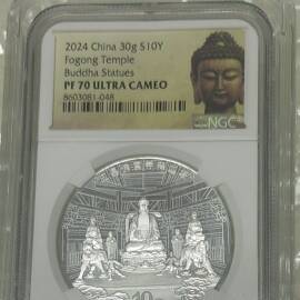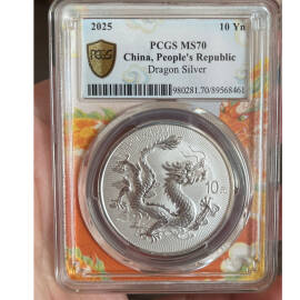 描 述:【2025中国龙年银币】PCGS MS70评级币,全新未拆封,带原装评级盒,99.9%纯银,重31.104克,面值10元,生肖龙年题材,正面龙腾云雾,背面长城,收藏投资两相宜。