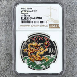 描 述:2026年马年生肖银币,Lunar Series系列,15克彩色精制,5元面值,NGC评级PF70 ULTRA CAMEO,首日标,品相全新未拆封。原装评级盒+官方鉴定证书齐全,号码无4