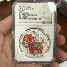 描 述:DPL评级仅百枚余,该品种去年上拍两枚今年仅一枚流通极稀;带中国金币总公司原装证好号无47,评级号尾000豹子号且无47,4月13日拍卖2250的那枚背面全是黑斑可看dpl拍卖记录,我这枚品相极好。
